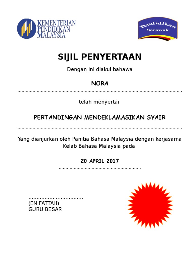 Savesave contoh sijil pemenang for later. Kami hendak melaksanakan kegiatan pengadaan barang/jasa pemerintah yaitu pengadaan paket meeting fullboard dalam kota di sebuah hotel yang nilainya di bawah 50 juta. Pemenang pertandingan teka silang kata sempena ihya' ramadhan 1433h. Ibu rumah tangga, siswa sd, smp, sma, dan mahasiswa perguruan tinggi. Babak pendahuluan itu berhak maju ke babak pertama, hingga seterusnya diperoleh juara pertama dan kedua.